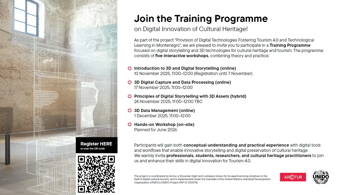 Program obuke kombinuje online, hibridne i terenske sesije, omogućavajući učesnicima da izgrade teorijsko znanje, primijene nove vještine u praksi i direktno se uključe u primjere iz stvarnog okruženja. Serija će se nastaviti predstojećim radionicama fokusiranim na 3D prikupljanje podataka, digitalno pripovijedanje uz 3D sadržaje, upravljanje podacima, kao i završnom praktičnom radionicom planiranom za jun 2026. godine.